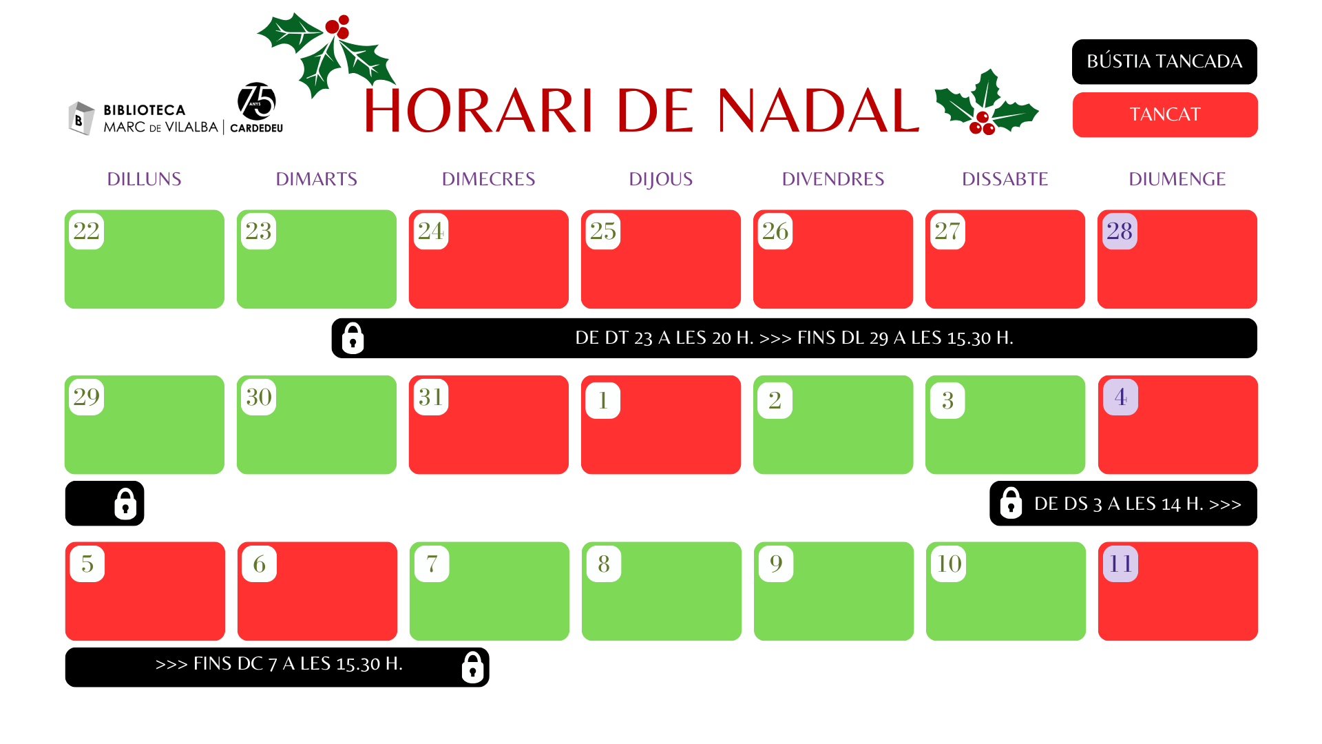 Horari de Nadal 2025
